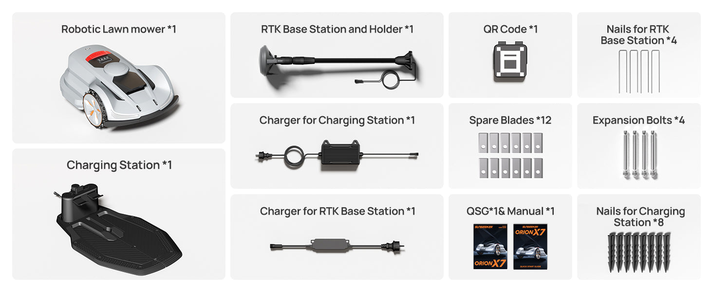 Everything you need for a fast, wire-free setup and smart mowing.